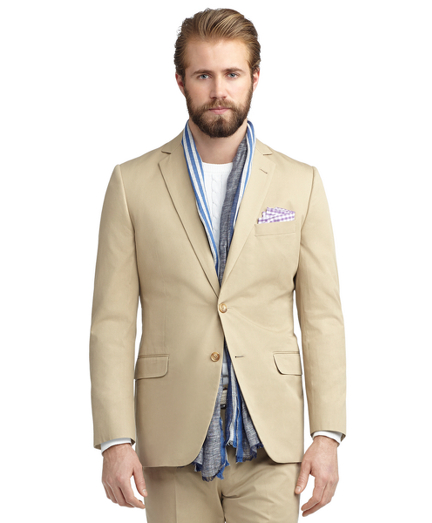 Even though the seersucker suit/sport coat reigns king during the spring, the tan suit is supreme all year round and especially during the warmer months. This fall and winter, you saw an explosion of tan outerwear, straying away from the traditional blacks, grays, and blues that would normally abound. It's time to do the same with the classic navy and light gray suit in your closet, and bring out a fresh new khaki suit.